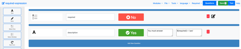 If a question is set as required then you can optionally add an expression that makes this conditional. If you leave that expression blank then the question will always be required.